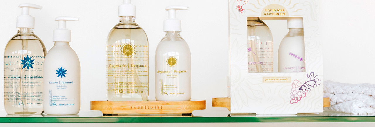 Liquid Soap & Lotion Set w/ Bamboo Tray